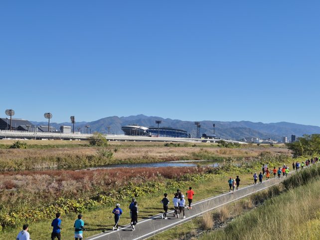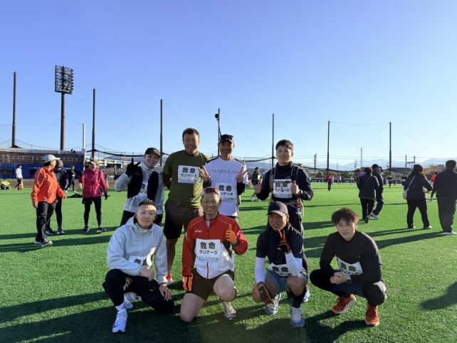 令和7年12月6日(土)、松山市中央公園から重信川河川敷で開催された「坊ちゃんランランラン(市民マラソン大会)」に、当消防本部の有志職員が救命ランナーとして参加しました。