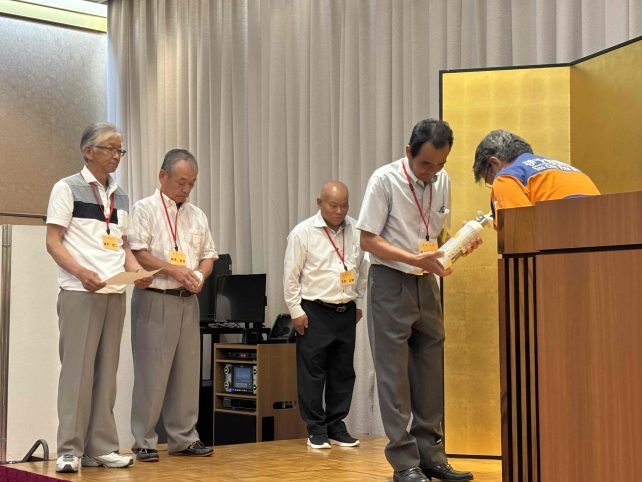 伊予地区住宅用火災警報器設置・維持管理対策連絡会(伊予市・松前町・砥部町・伊予消防等事務組合)では、令和7年9月19日(金)にウェルピア伊予において開催される令和7年度南山崎地区敬老会に併せて、住宅用火災警報器等の贈呈式を行いました。